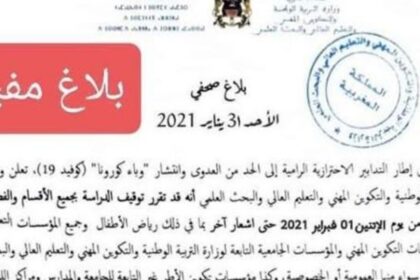 وزارة التعليم تؤكد استئناف الدراسة في الفاتح فبراير وتنفي بلاغ التوقيف